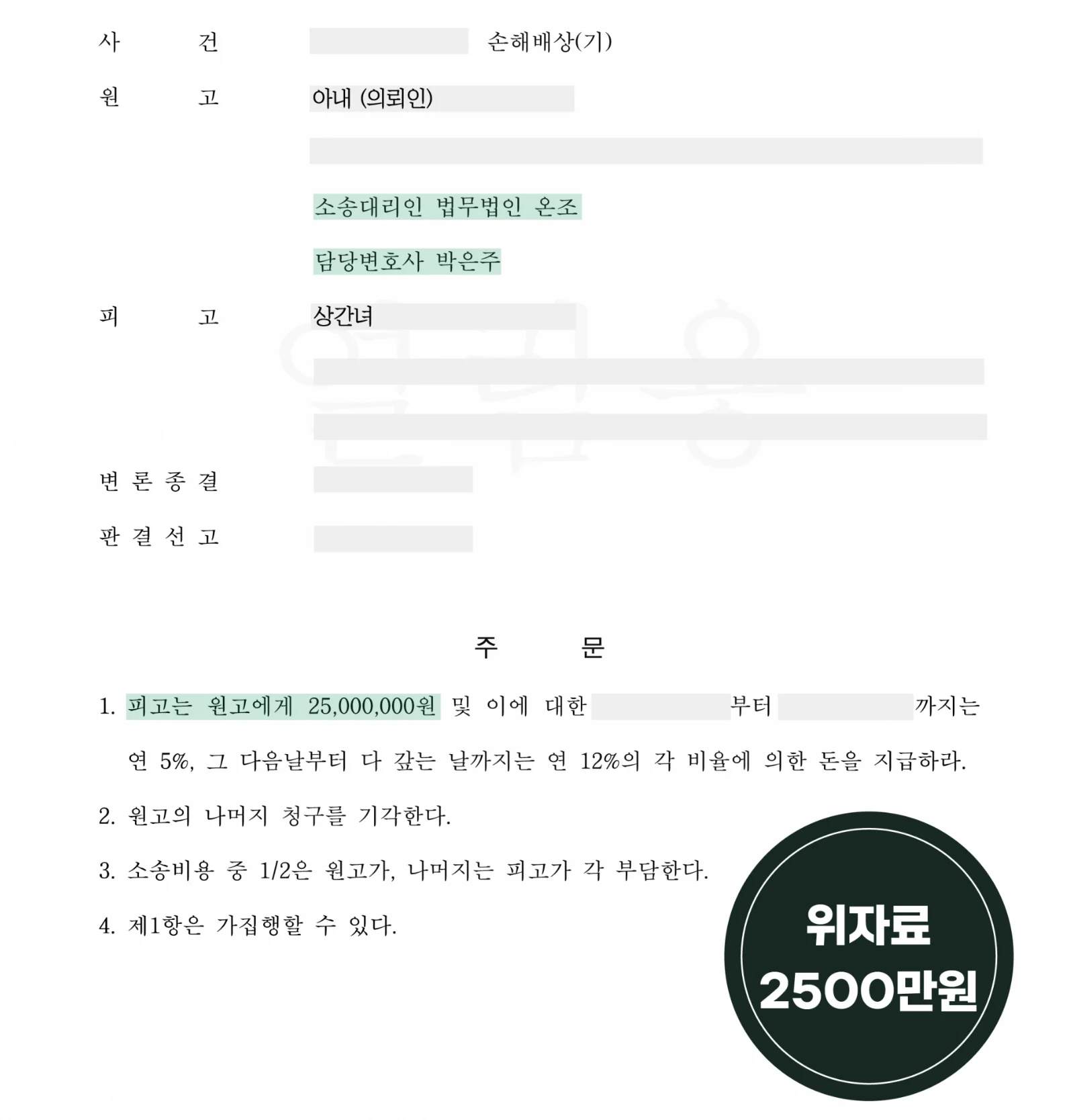 4. 적반하장 내연녀로부터 위자료 2,500만 원 지급받은 사례