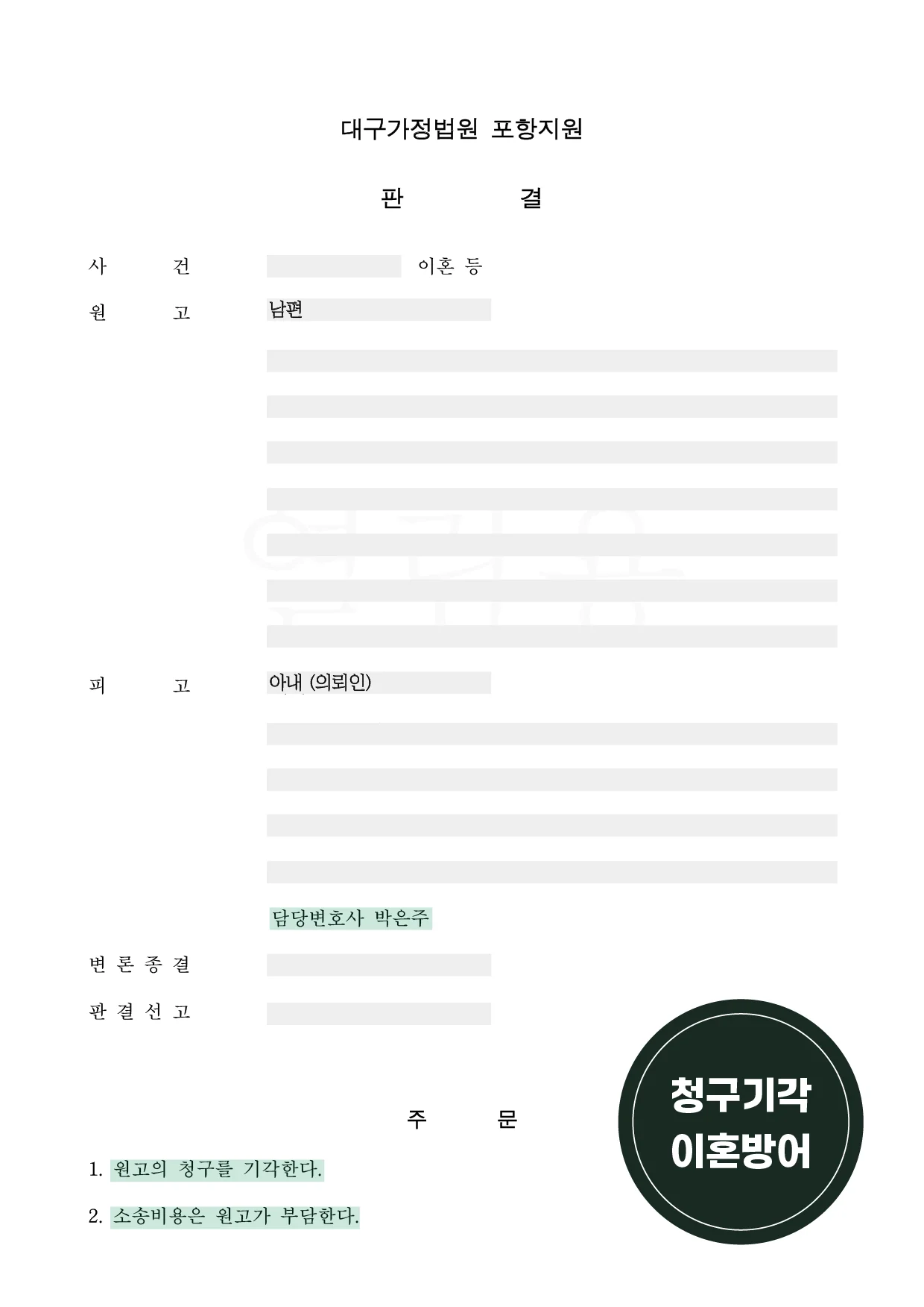 포항이혼전문변호사 이혼소송 방어 사건 결과