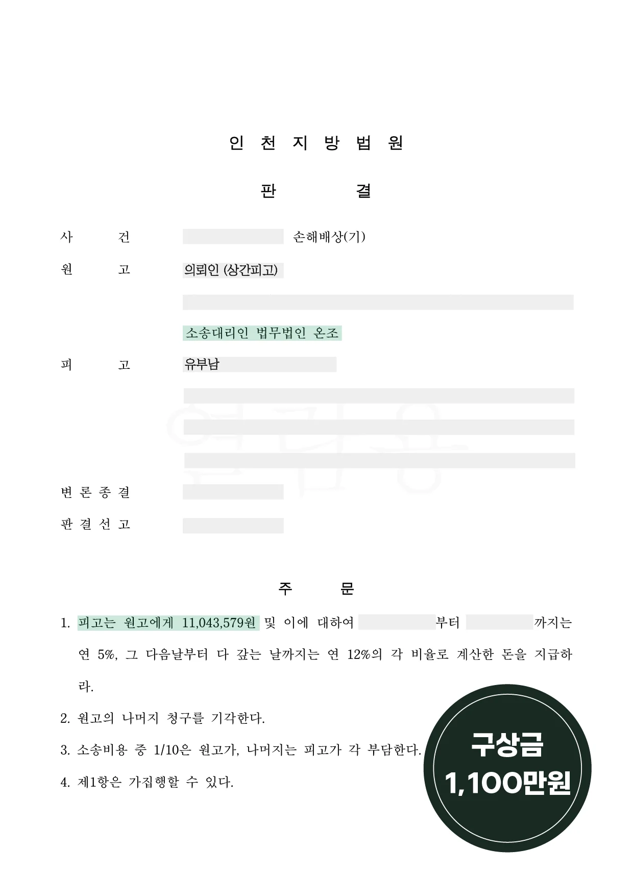 그 결과 의뢰인이 지급한 금액 중 절반에 해당하는 부분에 대해 상대방이 부담해야 한다고 보았고, 최종적으로 약 1천만 원 상당의 금액을 지급하라는 판결이 내려졌습니다.