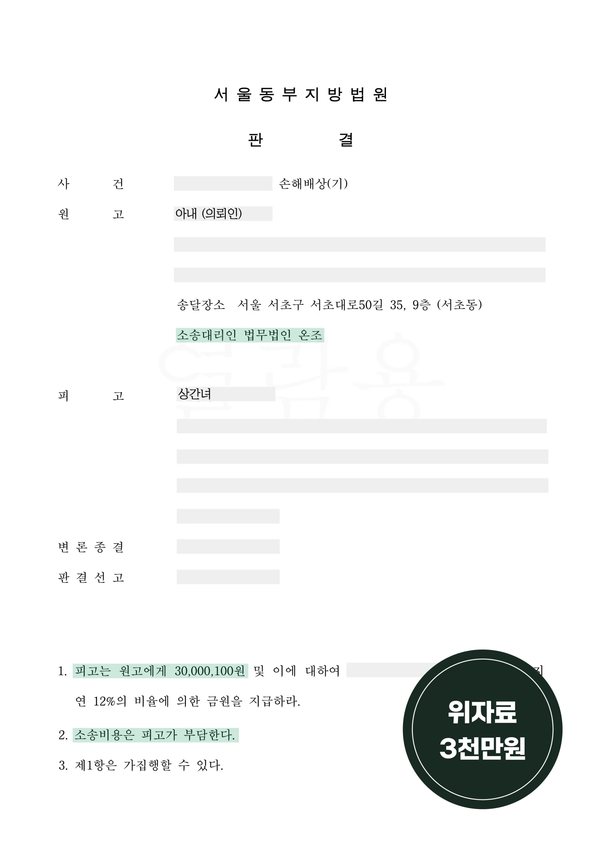 상간녀소송 위자료 액수 3,000만 원 인정받은 서울동부지방법원 실제 사례 공개