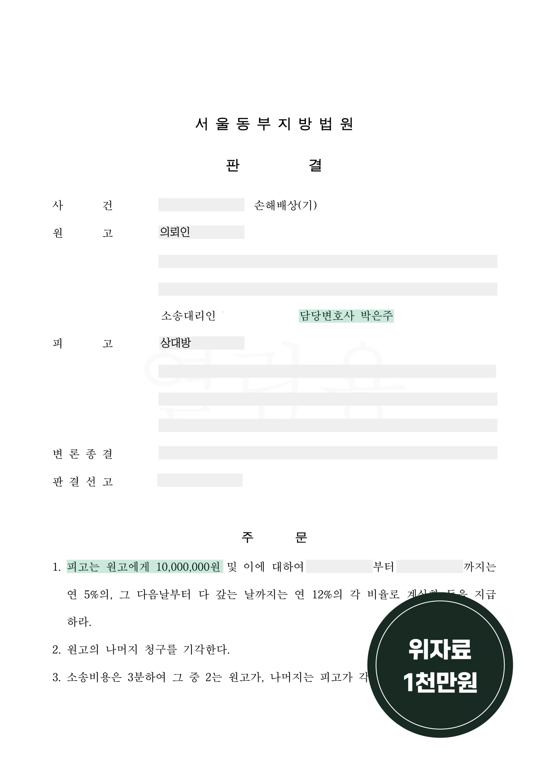 💰 [판결 결과] 위자료 1,000만 원 인정