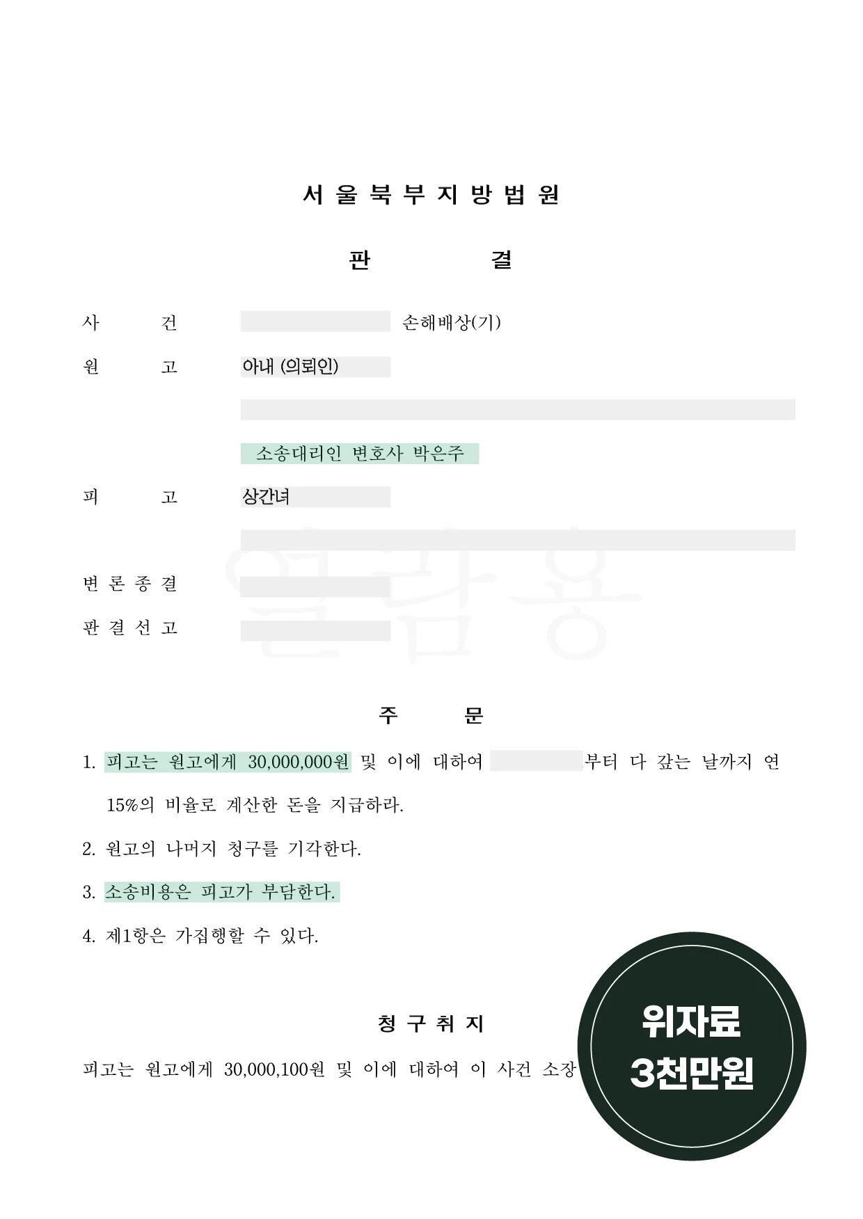 💰 위자료 3천만 원을 지급하라는 판결을 내렸습니다.