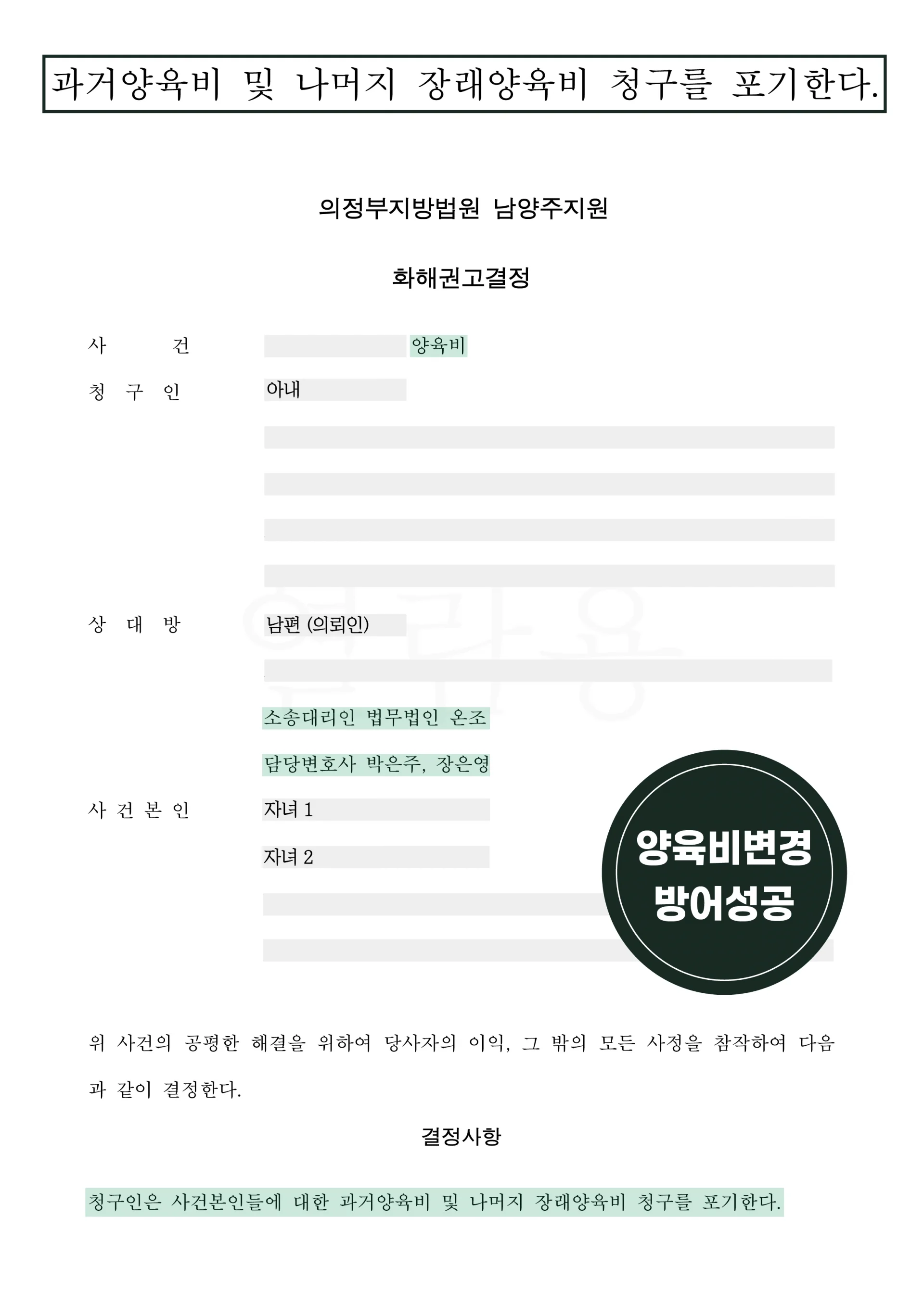 이 결과는 단순히 운이 좋은 것이 아니라 양육비변경방어를 철저히 준비한 결과라고 볼 수 있습니다.